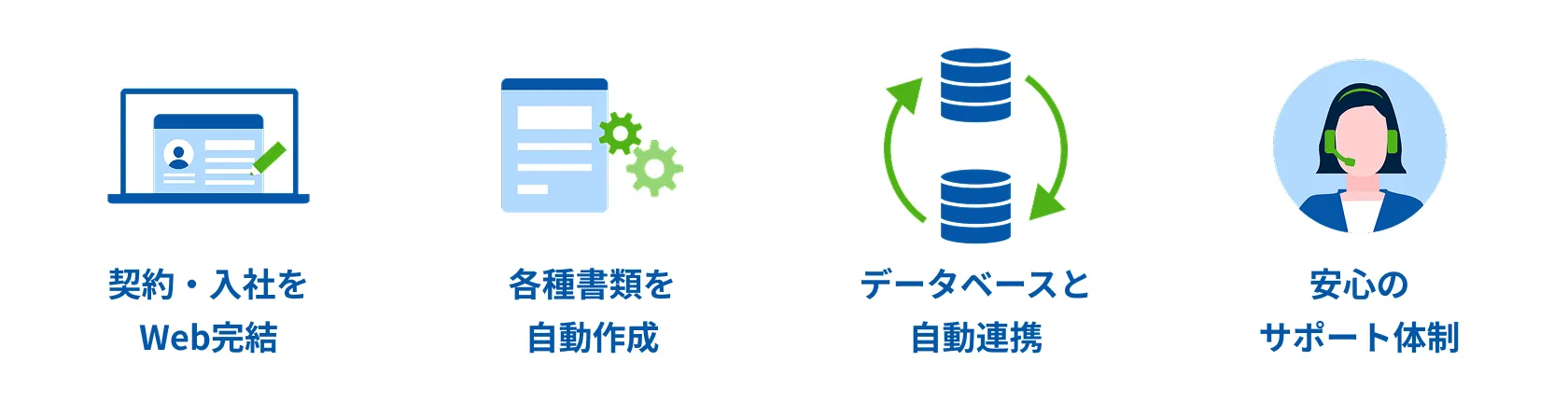 入社手続きなどで収集した情報を、そのままe-Govへ連携。役所へ出向くことなく、社会保険・雇用保険の各種申請が完了します。