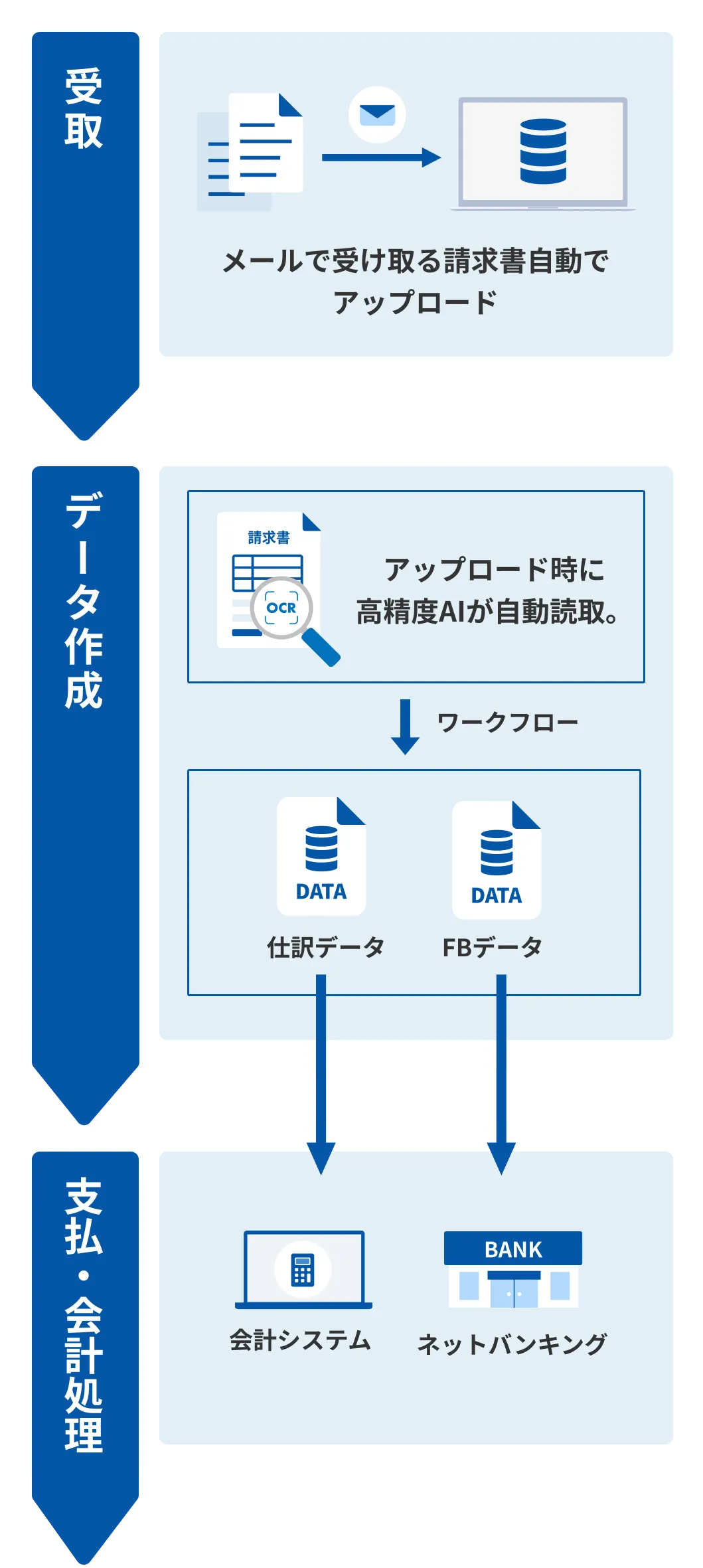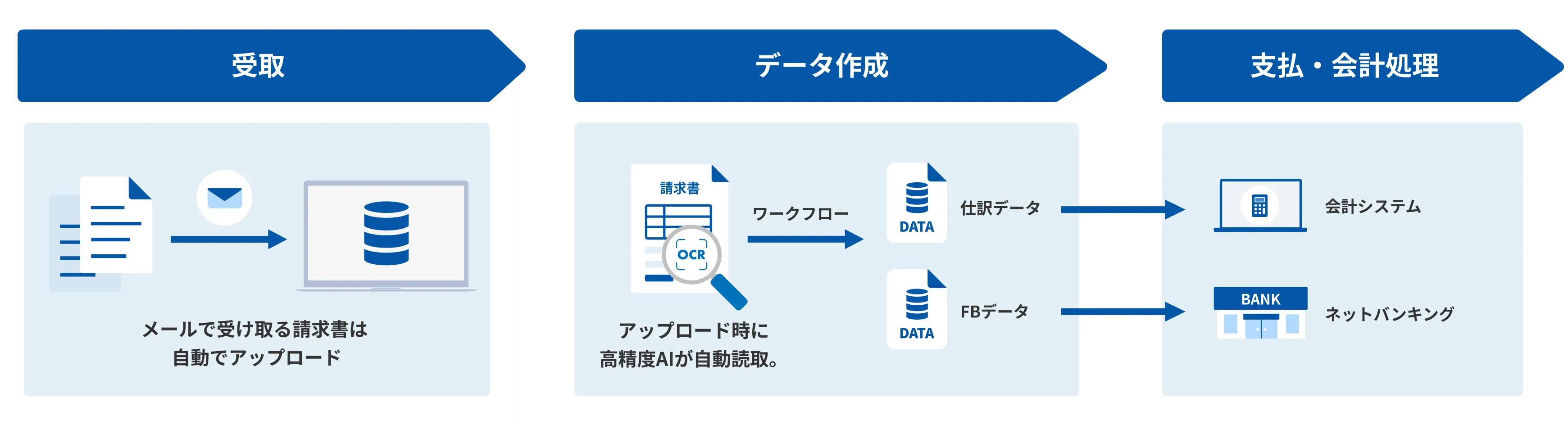 請求書の受け取りから支払・会計処理までひとつのシステムで完結