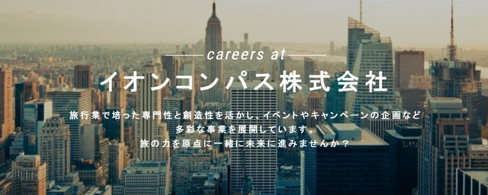 仕事内容 <業界未経験歓迎>法人営業経験を生かして憧れの旅行業界で働くチャンス! 法人向け(労働組合や各種法人)のビジネス視察旅行、会議(イベント)の企画提案をしていただくお仕事です。イオングループ以外のお客様を中心に提案するチームを今年度新設しました。 基本的に飛込み営業はなく、お取引がある企業への深耕営業からスタート、ご要望に応じた提案をしていきます。 <具体的な仕事内容> 法人向け各種旅行、視察旅行、会議(イベント)の企画・手配、事務局業務等をお任せいたします。 ■団体旅行 ・レクリエーション旅行や日帰りバスツアーの企画 ・国内海外の視察旅行ツアーの企画、提案 ・企画書の作成(行程表の作成) ・各種手配(バスの手配、ホテル手配など) ・添乗業務(全てではございません) ■会議・研修・イベントなど ・各種会議やイベントに関するプラン企画提案 ・各種手配(会場・宿泊など) ・当日の立ち合い業務(全てではございません) 近年、労働組合をはじめ、イオングループ外の企業への提案が増えております。 旅行だけでなく、プロモーションの相談やイベント、会議の運営など提案できる幅が広くスキルアップできますよ。新しい視点でお客さまの課題解決を提案できる方を募集致します。 (変更の範囲)会社の定める業務