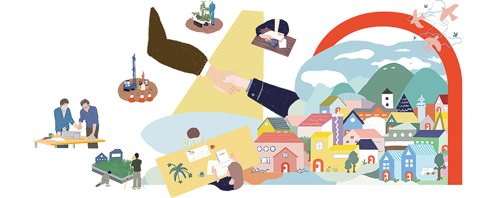 営業、設計、施工が一体となり、お客様一人ひとりの想いを大切にしながら、理想を形にするお手伝いを行う。
