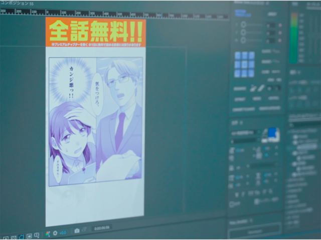 電子書籍サービスが取り扱うマンガの、コマのレイアウトやキャッチコピーを魅力的にデザインし、動画広告として配信します。