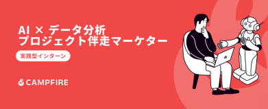 挑戦者の想いを届け、社会を動かす。 CAMPFIREは、挑戦者(Project Owner)の想いを支援という行動につなげるクラウドファンディング・プラットフォームです。 このインターンシップでは、机上の空論ではない、リアルなプロジェクトの現場に飛び込みます。 まちのキーパーソン、社会課題の解決に挑む第一人者、まだ見ぬ才能を持つクリエイター。 そんな熱い想いを持った挑戦者(Project Owner)に寄り添い、あなたの力で、その挑戦を成功へと導く"伴走者"を募集します。 ◆ Mission:なぜやるのか あなたの役割は、挑戦を“社会に広げる翻訳者” 素晴らしいアイデアや熱い想いも、社会に届かなければ支援の輪は広がりません。 私たちは、挑戦者(Project Owner)の情熱を、伝わる言葉や心を動かす仕組みに"翻訳"することで、共感と支援を生み出し、挑戦を加速させます。 あなたのマーケティング視点とコミュニケーション能力で、そしてAIをはじめとするテクノロジーの力で、埋もれているかもしれない誰かの可能性を、社会の希望に変える。未来を動かす一歩を、私たちと一緒につくりませんか? ◆ Role:なにをやるのか 挑戦者(Project Owner)の最も身近なパートナーとして、プロジェクトの戦略設計から実行まで、一気通貫でサポートします。 プロジェクトの戦略立案・進行管理 Project Ownerとの定期的なミーティングを通じて、過去のプロジェクトデータやAI分析も参考に、目標達成までの道のりを描き、スケジュールを管理します。 心をつかむマーケティング施策 ターゲットに対する訴求メッセージの設計、プロジェクトページの改善提案、支援したくなるリターン(返礼品)の設計など、あなたのアイデアでプロジェクトの成果を最大化します。 共感の輪を広げる広報支援 SNSでの発信戦略やイベント企画などを通じて、プロジェクトの魅力を社会に届け、ファンを増やしていきます。 未来へつなぐコミュニティ運営 プロジェクト終了後も続く、支援者との温かい関係性を築き、次の挑戦へとつなげる仕組みを考えます。 成功の仕組み化 得られた成功事例や知見を社内に共有し、CAMPFIRE全体の成功率を高めるための標準化に貢献します。 ◆ Value:このインターンで得られるもの 教科書には載っていない、「生きたビジネススキル」と「社会のリアル」がここにあります。 課題解決の最前線を走る経験 マーケティング、広報、プロジェクトマネジメントといった普遍的なスキルに加え、ビジネスの現場で成果を出すためのAI活用スキルを、リアルなプロジェクトで実践的に学ぶことができます。 社会のリアルな課題に触れる 地域創生、一次産業の未来、新しいアートやスポーツの形など、社会の第一線で奮闘する挑戦者のリアルな想いや課題に間近で触れられます。 信頼を築き、人を動かす力 立場や年齢の異なるProject Owner・支援者との対話を通じて、実社会で通用するコミュニケーションスキルと信頼構築力を養います。 経営陣から直接学ぶ、圧倒的な成長環境 事業を創り上げてきた経営メンバーが、あなたのメンターとして伴走します。他では決して得られない、視座の高いフィードバックがあなたを成長させます。 あなたの「好き」を仕事の力に 地域、スポーツ、アート、エンタメ、社会課題など、あなた自身の関心領域も活かしてプロジェクトに伴走できます。 ◆ Ideal Candidate:こんな仲間と働きたい 私たちは、あなたの「挑戦したい」という気持ちを歓迎します。 【Must】こんなあなたを求めています! 物事を筋道立てて考え、自ら行動を起こせる方 相手の立場に立って考え、誠実な関係を築ける方 どんな困難があっても、最後までやり遂げる責任感のある方 学生団体、イベント運営、ボランティアなどで、仲間と何かを成し遂げた経験がある方 【Welcome】さらに、こんな経験や想いがあれば最高です! マーケティング、広報、営業など、誰かに価値を届けようと試行錯誤した経験 AIなどの新しいテクノロジーを活用して、世の中を良くしていくことにワクワクする方 自分の言葉で伝えるのが好き(ブログ記事執筆、SNSアカウント運用など) 「この分野なら誰にも負けない!」という熱い想いや専門性 ◆ Growth Roadmap:入社後の成長イメージ 一人ひとりの強みに合わせて成長をサポートする、オーダーメイドの育成プログラムを用意しています。 1–2ヶ月目:基礎スキル習得フェーズ CAMPFIREの事業やカルチャーを深く理解し、ビジネスの土台となる基礎スキルを研修で学びます。 3–4ヶ月目:専門スキル強化 経営メンバーが直接メンターとなり、極めて実践的な専門演習に挑みます。具体的なプロジェクトのデータを元に、あなた自身が改善計画を立案。経営メンバーからのレビューで質を磨き上げ、最終的には顧客(プロジェクトオーナー)へ直接提案を行います。 5–6ヶ月目:実践知の仕組み化 実戦を通じて培ったリアルな現場感をもとに、他のメンバーが使える「再現性のあるアウトプット」を、経営メンターと一緒に作り上げます。あなたの経