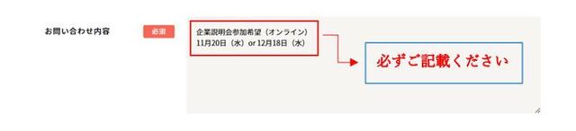 ※登録フォームの「お問い合わせ内容」に①企業説明会参加希望(オンライン)、②参加希望日程の2点を必ずご記入くださいませ。