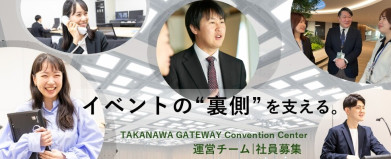 仕事内容 2025年3月にまちびらきを迎えた「TAKANAWA GATEWAY CITY」。 同年9月には商業施設「ニュウマン高輪」も開業し、 街は本格稼働フェーズに入り、日々多くのイベントが開催されています。 ■「TAKANAWA GATEWAY Convention Center」施設運営メンバー募集! その中心施設の一つである 「TAKANAWA GATEWAY Convention Center」では、 イベントの舞台裏から本番までを支える施設運営メンバーを募集しています。 私たちの役割は、会場を「貸す側」として、イベント主催者様と 伴走しながら、準備段階から当日までを一緒につくり上げていくこと。 国内外の学会・セミナー、国際コンベンション、商品発表会や展示会など、 法人のお客様を中心に多様なイベントが開催されます。 イベント成功のカギとなる “準備・段取り・調整”を担う、やりがいのあるポジションです。 ■ 具体的な仕事内容 ・お客様との打ち合わせ・内覧対応 (会場仕様、レイアウト、設備・備品、飲食などのニーズヒアリング) ・会場レイアウト作成、備品・機材の事前準備 ・協力会社との調整・進行確認 ・イベント当日の立ち合い、トラブル対応 ・請求書作成補助、事後フォロー など ※予約受付~確定までは、専任の予約チームが対応します。 ※新規飛び込み・テレアポ等の営業業務はありません。 【業務内容変更の範囲】 ・会社の定める業務 ■ 働く環境について 施設運営のノウハウはすでに整っており、入社後は既存メンバーと一緒に 業務を進めながら、安心して仕事をスタートできる環境です。 施設内は、コンベンションフロア(地下2階・地下1階)と カンファレンスフロア(6階)に分かれており、 それぞれのフロアごとにチームで運営を担当しています。 また、施設全体の予約受付を担う予約チームとも連携しながら、 イベント準備から当日までを進めていきます。 Q. どんなチーム? ・全体で17名(予約チーム6名/運営チーム11名) ・年代は20~40代中心で男女比は4:6 ・メンバーの約9割が中途入社 ・前職はホテル、ブライダル、音楽スタジオ、旅行業界などさまざま →イベント運営が初めてのメンバーも多く、 接客・接遇の経験や、段取り力・調整力などを活かして活躍しています。 Q. 1日の流れは? とある一日のイメージは、以下の通りです。 ※イベント開催日は、当日の立ち合いや対応が入ることもあります。 【午前】 ・メールチェック・お客様対応 ・打ち合わせ、内覧対応 ・会場レイアウト作成、準備作業 【午後】 ・協力会社との調整・進行確認 ・予約チームとの情報共有 ・見積・請求書作成の補助 ・事後フォロー、翌日準備 対象となる方 【必須要件】 ・高校卒業以上 ・基本的なPCスキル(Word・Excel・PowerPoint) 【いずれかのご経験がある方・歓迎】 ・法人営業経験 ・宴会サービス・バンケットなどの勤務経験 ・旅行会社などでの手配業務などの経験 ・音響、映像、照明などの知識がある方 選考の流れ まずは「応募する」ボタンよりエントリーください。選考について、メールにてご案内いたします。 ※「@congre.hrmos.co」のドメインを迷惑メール(スパム)と判定されないように設定お願いいたします。 ①書類選考(履歴書・職務経歴書をご提出ください) ②1次面接(オンライン)→SPI検査 ③2次面接(東京本社・対面実施) ※ご提出いただいた応募書類は、ご返却致しかねますので予めご了承ください。