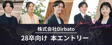 仕事内容 入社直後は、日本のリーディングカンパニーを相手に企業の経営課題をテクノロジー/デジタルの軸から解決する取り組みの中でスキル形成をして頂きたいと考えています。 デジタル・ITシステム関連のトランスフォーメーション推進にあたり、各工程をカバーしたサービスの提供が可能です。また、ワンプール制を採択することで、幅広い業界に支援を行っていただきます。 コンサルティング業界で、市場価値を高めたいといった熱い思いを持った学生、大歓迎です。 募集職種 コンサルタントポジション 各業界大手顧客向けにテクノロジー領域を中心とした経営課題解決を実現するプロジェクトメンバーの一人としてご活躍いただく、コンサルタント職の募集を行っております。 戦略~実行までの一気通貫×ワンプール制で広く経験を積んでいただき、マネージャーとしてクライアント経営層向けの提言やマネジメントを行っていただくだけでなく、スペシャリティロールであるアーキテクトとして、テクノロジーに特化したキャリア選択も可能となります。 当社は創業7年のベンチャー企業ですが、内資系・外資系のコンサルファーム、メガベンチャー等の出身者が多く参画しています。研修制度(ワークショップ、E-Learning、他)やキャリアカウンセリング制度、日々の業務など、複数の観点からコンサルタントとして今後必要となるマインドセット・スキルセットを皆様が磨き上げるべくフルサポートします(若手社員によるメンター制度有)。また、部活動も50以上が存在しており、部門・役割・年次を超えた縦横のリレーション構築が可能となっております。 採用情報 応募資格 ・2027年4月入社が可能な方(大学卒業以上) ・社会人経験(正社員就業歴)をお持ちでない方 ・素直さ/前向きさ/自己成長欲/自責思考のワードにピンとくる方 ・成長のために自ら考え行動ができるマインドセットを有する方 ・プロアクティブなコミュニケーション力を有する方 ・デジタル、IT等の最先端技術に高い興味関心を持たれる方 ・論理的思考能力、課題解決能力を有する方 *文系出身者でもテクノロジーに対する興味関心があれば大歓迎です! 本選考フロー ・本エントリー ・書類選考 ・1次選考(面接) ・筆記試験 ・最終選考(場合により複数回実施) 主な採用実績校 <大学院> 大阪大学大学院、オックスフォード大学大学院、関西大学大学院、京都大学大学院、芝浦工業大学大学院、上智大学大学院、千葉大学大学院 、筑波大学大学院、東京科学大学(旧:東京工業大学)大学院、同志社大学大学院、東北大学大学院、名古屋大学大学院、広島大学大学院、北海道大学大学院、明治大学大学院、横浜国立大学大学院、立教大学大学院、早稲田大学大学院、他 <大学> 青山学院大学、インディアナウェスレヤン大学、大阪大学、オークランド大学、お茶の水女子大学、学習院大学、カリフォルニア州立工科大学ポモナ校、カルガリー大学、関西大学、関西学院大学、九州大学、京都大学、慶應義塾大学、神戸市外国語大学、神戸大学、国際教養大学、国際基督教大学、國立政治大学、国立台北大学、上智大学、台湾師範大学、千葉大学、中央大学、中原大学、筑波大学、ディーキン大学、東京外国語大学、東京大学、東京都立大学、東京理科大学、同志社大学、東北大学、一橋大学、広島大学、法政大学、北海道大学、ミネソタ大学ツインシティー校、明治大学、横浜国立大学、延世大学、立教大学、立命館大学、早稲田大学、他 社員インタビュー記事 「多様な可能性を求める人にオススメ」業界最速クラスで成長するITコンサルティングファーム「Dirbato」の魅力に迫る 全ては、IT人材の市場価値向上のために。ディルバートが総力を上げて「新卒社員研修」に取り組む理由 Dirbatoの圧倒的成長を支える「地道な支援の積み重ね」と「社員同士のつながり」 20代で経営課題に挑む。急成長中のITコンサルファーム・Dirbatoが実践する、「伴走型」の企業変革支援