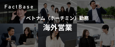 Fact Base/ベトナム法人について 会社名 FACT BASE VIETNAM INC COMPANY LIMITED 住所 Tòa nhà The Hallmark, 15 Đ. Trần Bạch Đằng, Thủ Thiêm, Thủ Đức, Thành phố Hồ Chí Minh 70000 ウェブサイト https://fact-base.jp/ 設立日 2024/9/11 資本金 118,977USD Fact Base/日本法人情報 本社 株式会社Fact Base 住所 東京都港区台場2丁目3番地1号 トレードピアお台場13F 設立 2022年09月01日 従業員数 260名 事業内容 図面管理システム「ズメーン」の開発と販売 サービスURL: https://lp.zume-n.com/ Sales Staff/営業スタッフ 〈仕事の内容〉 図面管理SaaS「ズメーン」のセールス活動 新規顧客開拓 ベトナムのローカル企業への架電とアポイントの獲得 ホーチミンを拠点として、ベトナム全国にあるローカルの製造業の会社へ営業活動をする 既存企業の対応 既存顧客との中長期的なリレーション構築とフォロー 日本本社との連絡・会議 日本法人の海外事業との定期的な会議の実施 ベトナムチームとの戦略・協力・相談など 〈Career plan/キャリアプラン〉 新規営業スタッフからスタートし、将来的にはメンバーが増えたときの管理職や展示会運営に向けての販売促進・マーケティング・カスタマーサクセスなどにチャレンジをすることが可能です。 〈Benefits of working for us/企業の魅力〉 事業拡大フェーズに携われる 急成長・海外展開を進めるフェーズにおいて、会社の成長を最前線で体感できます。 語学力を活かせる環境 日常的に外国語を使用するグローバルな環境で、語学力を最大限に活かせます。 急成長スタートアップならではの幅広いスキルが身につく 営業スキルはもちろん、事業開発・プロジェクト推進など、幅広いスキルを実践的に習得できます。 ベトナム人スタッフによるサポート体制 ベトナム人メンバーも複数在籍しており、困ったことがあれば相談し合える環境です。 募集要件 必須条件: 日系企業での勤務経験のある方 営業経験のある方(2年以上歓迎) N2レベルの日本語の語学力 歓迎条件: 経験:新規営業経験もしくは製造業での営業経験のある方 求める人物像: 新規顧客への営業活動に積極的な方、行動力がある方、日本に興味・関心がある方