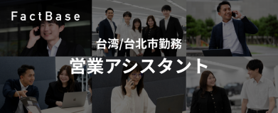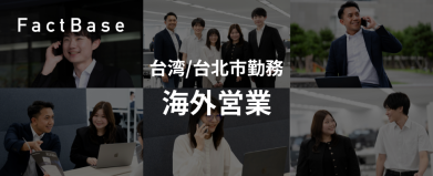 Fact Base/台湾法人について 会社名 FACT BASE TAIWAN INC. 實基有限公司 住所 台北市松山區敦化北路167號宏國大樓12樓B1區 Suite B1, 12nd Floor, Hung Kuo Building, 167, Dun Hua N. Road, Songshan District, Taipei ウェブサイト https://fact-base.jp/ 設立日 2025/8 Fact Base/日本法人情報 本社 株式会社Fact Base 住所 東京都港区台場2丁目3番地1号 トレードピアお台場13F 設立 2022年09月01日 従業員数 240名(うち台湾メンバー:9名) 事業内容 図面管理システム「ズメーン」の開発と販売 サービスURL: https://lp.zume-n.com/ Sales Staff/営業スタッフ 〈採用背景〉 台湾法人立ち上げに伴う新規メンバー募集 〈仕事の内容〉 図面管理SaaS「ズメーン」のセールス活動 新規顧客開拓台湾のローカル企業への架電とアポイントの獲得 台湾を拠点として、台湾全国にあるローカルの製造業の会社へ営業活動をする(営業区域の希望可)。 既存企業の対応既存顧客との中長期的なリレーション構築とフォロー 日本本社との連絡・会議日本法人の海外事業との定期的な会議の実施 台湾チームとの戦略・協力・相談など 〈Career plan/キャリアプラン〉 新規営業スタッフからスタートし、将来的にはメンバーが増えたときの管理職や展示会運営に向けての販売促進・マーケティングなどにチャレンジをすることが可能です。 〈Benefits of working for us/企業の魅力〉 台湾法人立ち上げということもあり、0→1で会社規模が拡大していくことを身近に感じられる。立ち上げ時の業務経験ができる。 日本法人には台湾人スタッフが7人いるため、不明点があれば随時フォローや相談が可能な環境となっています。 募集要件 必須条件 学歴:大学卒業 経験:セールス経験(2年以上) N2レベルの日本語の語学力 自動車運転免許 中国語(台湾)ネイティブレベルで話せる方 歓迎条件 経験:新規営業経験もしくは製造業での営業経験のある方 求める人物像:新規顧客への営業活動に積極的な方、行動力がある方、日本に興味・関心がある方