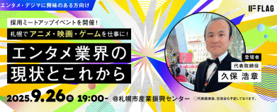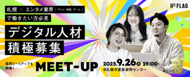 イベント概要 フラッグは、エンターテインメント分野を軸に 多様な業界のデジタルマーケティングをサポートしている マーケティングコミュニケーション会社です。 当日は代表の久保より会社のビジョンや事業内容について詳しくご説明いたします。 また、当イベントではエンタメ業界の今後や最新情報についてもご紹介しますので、 業界動向を知りたい方にもおすすめです。 日本のコンテンツ産業はこの10年で市場規模が5倍に拡大しており、今後も成長が期待されています。 転職をお考えでない方でも、エンタメ業界に興味がある方はぜひご参加ください! 弊社は全国8か所に拠点を構えており、 北海道・札幌エリアで働くことを希望される方や、地元でキャリアアップを目指したい方にもご活躍いただける環境がございます。 地域に根差した働き方や、札幌ならではのライフスタイルと両立できる環境が整っていますので、 「地元で自分らしく働きたい」という方もぜひご注目ください。 社員との交流会も予定しており、 実際に働くメンバーと直接話すことで、職場の雰囲気や仕事のやりがいなども感じていただけます。 エンターテインメントが好きな方、デジタルマーケティング分野にご興味をお持ちの方、 「好きを活かして地元・札幌で働きたい」とお考えの方はぜひお気軽にご参加ください。 皆様と直接お話しできることを楽しみにしております。 ▼こんな方におすすめ ・エンタメ業界で働きたい ・デジタルマーケティングの知見を活かしたい ・地元に住みながら大きな案件に裁量を持って取り組みたい ・転職を考えていて、どんな企業があるのかを知りたい ・ソーシャルメディアを使ったマーケティングに興味がある 詳細 ▼日時 2025年9月26日(金)19:00~21:00 ※途中参加、途中退場も可能です ▼場所 株式会社フラッグ 札幌オフィス 北海道札幌市白石区東札幌5条1丁目1-1 札幌市産業振興センター 最寄り駅:地下鉄東西線「東札幌駅」より徒歩10分 地図:https://www.flag-pictures.co.jp/company/access/#sapporo 共催:(一財)さっぽろ産業振興財団 ▼タイムテーブル 18:45- 受付開始 19:00-19:30 セミナー 19:30-19:40 Q&Aセッション 19:40-19:50 採用についてのご案内 20:00-21:00 ネットワーキング(ドリンク、軽食あり) ▼会社概要 https://www.flag-pictures.co.jp/recruit/ 続きを見る