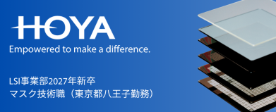 事業内容 LSI事業部 LSI事業部では、半導体製造に欠かせないガラス製部材マスクブランクス・フォトマスクの研究開発、製造を行っています。マスクブランクスとは、半導体チップを作るための原版となる部材のことです。EUVとオプティカル(EUVではない既存の露光技術)の両製品を展開し、汎用品から最先端まで幅広い分野の半導体に対応しています。世界シェアNo.1を誇る業界のリーディングカンパニーとして、半導体メーカーや露光装置メーカー等と協力しながら半導体の進化を牽引しています。 マスクブランクス・フォトマスクとは 半導体を安定的に供給し続けるために欠かせないのが「マスクブランクス」という精密部材。私たちHOYA株式会社LSI事業部では、このマスクブランクスにおいて世界シェアNo.1を誇っています。 半導体チップを欠陥なく大量に作るためには『型』となる原版が必要となります。ガラス部材である「マスクブランクス」にICチップの回路図を描き(=フォトマスク)、そこにフォトリソグラフィの技術を用いてシリコンウエハに回路図を縮小転写させていくことで半導体チップが製造されています。 ※ マスクブランクス:「フォトマスク」のベースとなる部材(IC回路図が描かれる前の状態) ※ フォトマスク:ICチップの型となる原版(IC回路図が描かれた状態) 近年は、AIやハイパフォーマンス・コンピューティング、5Gなどのテクノロジーで使用される最新世代半導体の製造工程で重要なEUV(極端紫外線)マスクブランクスの開発に注力しています。 仕事内容 プロセス技術 フォトマスクの製造において、プロセスを分析・改善するための開発を行います。マスクブランクスがフォトマスクの原板となるため、ブランクスSBUと連携し、要素技術の開発を担当していただきます。 生産技術 新たに開発された製品を量産できる体制にするのが生産技術の仕事です。 それらの開発技術や生産装置の選定・導入をいかに製造工程に落とし込んでいくか、その上で大量かつ高品質を実現していくためのノウハウを技術的に研究し、実現していきます。 1年目の仕事 入社後2ヶ月は基礎的知識を習得するための研修期間となり、その後1ヶ月の仮配属を経て本配属となります。上司や先輩社員のサポートのもと、OJTをメインに技術を磨いていきます。