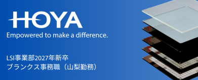 事業内容 LSI事業部 LSI事業部では、半導体製造に欠かせないガラス製部材マスクブランクス・フォトマスクの研究開発、製造を行っています。マスクブランクスとは、半導体チップを作るための原版となる部材のことです。EUV(極端紫外線)とオプティカル(EUVではない既存の露光技術)の両製品を展開し、汎用品から最先端まで幅広い分野の半導体に対応しています。世界シェアNo.1を誇る業界のリーディングカンパニーとして、半導体メーカーや露光装置メーカー等と協力しながら半導体の進化を牽引しています。 マスクブランクス・フォトマスクとは 半導体を安定的に供給し続けるために欠かせないのが「マスクブランクス」という精密部材。私たちHOYA株式会社LSI事業部では、このマスクブランクスにおいて世界シェアNo.1を誇っています。 半導体チップを欠陥なく大量に作るためには『型』となる原版が必要となります。ガラス部材である「マスクブランクス」にICチップの回路図を描き(=フォトマスク)、そこにフォトリソグラフィの技術を用いてシリコンウエハに回路図を縮小転写させていくことで半導体チップが製造されています。 ※ マスクブランクス:「フォトマスク」のベースとなる部材(IC回路図が描かれる前の状態) ※ フォトマスク:ICチップの型となる原版(IC回路図が描かれた状態) 近年は、AIやハイパフォーマンス・コンピューティング、5Gなどのテクノロジーで使用される最新世代半導体の製造工程で重要なEUV(極端紫外線)マスクブランクスの開発に注力しています。 仕事内容 生産管理 海外工場等からの材料調達から製品出荷までの工程管理と、完成した製品を顧客に遅滞なく届けるための物流管理を担当します。経営計画や販売計画、受注や需要状況の分析に基づき、生産計画の立案を行う、まさに製造業の司令塔と呼べる仕事です。 1年目の仕事 入社後2ヶ月は基礎的知識を習得するための研修期間となり、その後1ヶ月の仮配属を経て本配属となります。上司や先輩社員のサポートのもと、OJTをメインに技術を磨いていきます。