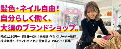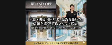 はじめに 本求人は、K-ブランドオフの販売・買取スタッフとなります。各店舗ごとの公開求人も併せてご覧ください。 仕事内容 【接客を超えた「価値提案」】 ラグジュアリーブランドのバッグ・時計・ジュエリー・アパレル等を扱う『BRAND OFF』の店舗で、ブランド品の【販売・買取】業務をお任せします。 ▼販売 ・ファッションの好みをヒアリング ・商品のご案内、接客販売(8〜9割が海外のお客様) ・タブレット通訳機で言語サポートあり ▼買取 ・AI+人の目による査定(eラーニング研修あり) ・高価格での提案や交渉(経営者層のお客様も多数) ・富裕層・リピーターとの関係構築 ※いずれも経験に応じてサポート体制あり 【充実な研修体制があるので未経験からでもキャリア形成できます】 エルメス・ルイヴィトン・ロレックスなどの一流ブランドを扱うため、常に“本物”に触れられます。未経験の方でも、OJT+集合研修+eラーニングで基礎から学べる体制が整っています。 【海外顧客にも選ばれる存在に】 語学が得意でなくてもOK。中国語・英語が話せずとも、誠実な対応で信頼を得て、リピートいただいた例も多数。経験を積めば海外勤務のチャンスも! 求人の特徴・ポイント ・主体性が活かせる環境 ・ラグジュアリー領域で専門性が身につく ・査定力・交渉力・接客力が成長 ・AI×人の目で学べる研修体制 ・「実力」と「やる気」が評価される昇給・賞与制度 【やりがいと成長の環境】 ラグジュアリーブランドを扱うだけでなく、「どう提案すれば信頼されるか」「どの価格が最善か」といった判断力・交渉力を現場で鍛えられます。20代から活躍し、経営や事業成長の視点まで磨ける環境です。 【海外も視野に入れたキャリア】 香港や台湾への出張・転勤のチャンスもあり、語学力や国際対応力も磨けます。バイヤー・チーフ・マネージャーとキャリアの幅も広く、経験者ならさらに専門性を高めるポジションで活躍可能です。 キャリアステップ 入社2年でバイヤーや買取専門店の店長に昇格可能 「販売 → バイヤー → チーフ → マネージャー」と段階的に成長 同業他社と比べ1〜2年早く、意思決定・マネジメント経験が積める環境です。 買取以外も習得できるスキル/経験 【“経営人材”としての素養が磨ける】 単なる販売・買取ではなく、以下のような本質的なビジネススキルを現場で習得可能です。 ①営業スキル~高単価商材を扱い、ヒアリング~提案・クロージングまで一貫して対応。顧客からの信頼を得る力が身につきます ②マーケティング力~売れ筋商品の分析・店舗内のレイアウト設計・販売戦略など、店舗を“メディア”として運営します。 ③真贋・商品知識~AIと熟練バイヤーによる査定で「本物を見抜く力」を磨き、希少な専門性を獲得できます・ ④数値管理~客単価・回転率・利益率などのKPIを意識した店舗運営を経験。店長になれば事業全体を担う力が育ちます。 【実際の社員の声】 「最初は“接客が好き”という想いだけでしたが、今は“どう数字を作るか”という視点を持つように。小売の現場でここまで経営が学べるとは思いませんでした。」 評価・収入制度 【個人インセンティブなしでも、頑張りは還元】 チームでの売上達成を重視。競争より協力の風土 成果は賞与にしっかり反映(昨年度実績4.5ヶ月分) 定量+定性の両軸評価で、着実に昇給可能です! 入社エピソード 【接客の原点に出会える場所】 母と一緒に来店した「買取体験」が入社のきっかけ。価格提示の丁寧な説明に安心感があり、「これが納得される接客なんだ」と強く印象に残りました。それからブランドリユースに興味を持ち、応募を決意したのがK-ブランドオフでした。 【信頼は“共感力”から生まれる】 単に査定をするだけではなく、「なぜその品を手放すのか」まで寄り添う姿勢に感動し、「買取ならブランドオフ」と母も口にするほどのファンに。今回の応募はスカウト経由でしたが、この経験があったからこそ選考に進もうと思えたのです。 求める人材 23~30歳の方歓迎(キャリア形成のため) 主体性を持って学びたい方 経営視点・市場価値を意識して働きたい方 買取経験者で専門性をさらに深めたい方 販売・接客経験者でステップアップしたい方 *接客業出身の先輩も活躍中。「あの買取体験が原点」と語る社員も在籍! 【店舗事業部 紹介動画】 以下をクリックしてご視聴ください。 https://www.youtube.com/watch?v=B9RvEQSMBAU