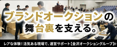 \中国語スキルを活かして働ける!/ 日本最大級の、業者専門・中古ブランド品オークション『JBA(ジャパン・ブランド・オークション)』を運営する当社! 今回は、カンタンな裏方作業を担当するスタッフさんを募集します! 「JBA」での商品管理・入力・中国語での接客対応スタッフ募集です! 日本最大級のブランド品のオークションに携われる最後の1枠限定!! 仕事内容 ・商品の整理、検品、仕分け ・商品情報の入力(専用システムあり) ・商品の撮影 ・オークション終了後の梱包、発送準備 ・下見に訪れた中国人業者様の受付 ・簡単なご案内(中国語使用) 未経験の方も安心してスタートできる、マニュアル完備の簡単作業。 先輩スタッフが丁寧に教えますので、安心してください。 【さらに、こんな経験ができます】 ・リアルな中古ブランド市場に触れられる ・海外業者とのやりとりを通じて中国語の実践経験が積める ・オークションという非日常の現場で、特別な体験も◎ \\未経験者入社しかいません!// 基本的にルーティンワークで、難しい作業もないのでスムーズに覚えられます♪先輩がしっかりお教えするのでご安心ください! 慣れてきたら… ◆商品の下見に来た方の来客対応 ◆オークション開催のための会場設営や準備 などもお任せします! 解説!JBA金沢について 今回募集している金沢でのオークションは「手競り」形式です! 手競りとは、オークション会場で購入したい品物の値段を声に出して競りを行う方式のこと。 オークションが開催される7日、8日、9日前に、事前に商品の下見を行い、当日は競りのみが行われます。 会場には多くの業者様が集まって開かれるため、休憩中などには同業者間で雑談や情報交換がなされることも面白さの一つです! ▼ 詳しくは公式HPをチェック! https://www.brandauction.jp/ 【オークション事業部 紹介動画】 以下をクリックしてご視聴ください。 https://www.youtube.com/watch?v=HeNDhWzjpnA
