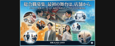 【“好き”が仕事に。世界を相手にできるキャリアを】 ■ブランド・ファッションへの興味が“仕事”に変わる ■未経験からラグジュアリーブランドの“プロ”へ ■販売→買取→バイヤー・海外・FC本部など多彩なキャリア ■完全反響型営業/飛び込みナシ/ノルマなし ■年休120日以上/残業月平均10h以下 ■平均年収538万円+賞与年3回(最大4.5ヶ月) 仕事内容 \一点物ブランドを“次の誰か”へ届ける仕事/ ラグジュアリーブランドのバッグ・時計・ジュエリーなどを扱う販売・買取のプロとして、まずは店舗での接客販売からスタートしていただきます。すべて【完全反響営業】で、飛び込み営業・テレアポ・ノルマは一切ありません。 【1年目のステップ】 入社~:店舗での接客販売(商品の魅力を伝える) 5月頃〜:買取研修スタート(真贋スキル・査定手法) 10月〜:販売+買取業務を両立 【業務詳細】 店舗での接客・提案・レジ対応 ブランド品の買取査定(研修後にスタート) EC出品・商品撮影・発送手配 売場づくり・在庫管理・VMD業務 教育・研修制度 入社後は「人として・社会人として・プロとして」成長できる6か月の研修カリキュラムを実施します。 ▽STEP1:ビジネスマナー研修 社会人の基礎力をしっかり習得。 敬語、電話応対、ホスピタリティなど、接客の基盤を身につけます。 ▽STEP2:買取・真贋研修(6か月) バッグ・時計・ジュエリーすべての商材について学びながら、 “本物を見抜く目”=真贋(しんがん)スキルを育てます。 🔹3つの学習形式でスキルアップ ① eラーニング研修:知識を体系的にインプット ② オンライン研修(月1時間):全国の新入社員と実践的に学ぶ ③ 集合研修(月1回/終日):実際の商材を扱い、鑑定・査定を体験 “真贋”とは、本物か偽物かを見極める専門スキル。 ブランドビジネスの根幹を支える「プロ鑑定士」としての第一歩を踏み出せます。 キャリアアップ あなたの「やってみたい」に応じて、キャリアを選べる柔軟な環境です。 【キャリアアップ例(反響営業→スペシャリストへ)】 ■Aさん|2年目:買取専門店の店長に昇格 ■Bさん|3年目:海外店舗(香港)で勤務 ■Cさん|7か月目でバイヤー(海外買付も担当)→3年目:バッグチームリーダー ■Dさん|9か月目:自社オークション部門に異動 ■Eさん|2年目:本部FC事業部のスーパーバイザー あなたの「やりたい」を尊重するキャリア設計。 希望に応じて、様々な道が広がります。 自身のなりたい姿や夢は自身の力で実現させましょう! 求める人物像・社風 ブランドオフが求めるのは、 “個人の成果”ではなく“チームとしての勝利”を喜べる人。 ▽こんな方を歓迎します ・負けず嫌いだけど、チームで勝つことを大切にできる人 ・思ったことをすぐ行動に移せるフットワークの軽い人 ・自分の市場価値を高めたい人 ・日本から世界へ、越境ビジネスにチャレンジしたい人 組織の雰囲気は、明るく前向きで行動的。 挑戦を歓迎する風土が根づいており、 「やってみたい」が尊重される環境です。 K-ブランドオフならでの魅力 ・反響営業 ・一点物の本物商品に触れられる希少な環境 ・ノルマなしでも昇給・キャリアアップが叶う評価制度 ・SDGs/サステナブルに貢献する再流通ビジネス ・グループ年商300億以上の安定企業 ・国内外70店舗以上(中国・香港・台湾に展開) ・グループで年間数十万点の買取実績を誇る安定基盤 ・「ブランドを通して世界と人をつなぐ」グローバルリユース企業 ・鑑定士・バイヤーとしてスキルを磨ける専門教育体制 ・SDGs貢献企業として注目されるサステナブルビジネス ・お客様は自営業や富裕層などの”成功を収めた方”が多く、新卒1年目から社長クラスの方々と毎日商談できる成長環境 【事業部紹介動画】 それぞれのURLからご視聴ください。 ■店舗事業部 https://www.youtube.com/watch?v=B9RvEQSMBAU ■WEB事業部 https://www.youtube.com/watch?v=P3WhvuaUv4o ■法人事業部 https://www.youtube.com/watch?v=-DH47cPdg24 ■オークション事業部 https://www.youtube.com/watch?v=HeNDhWzjpnA