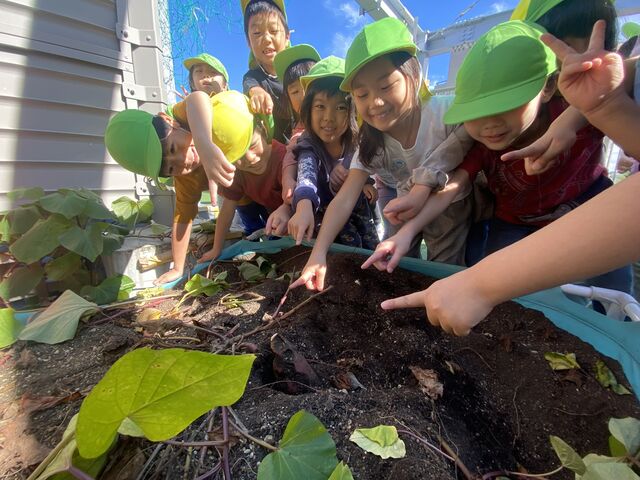 敷地に隣接する株式会社クボタが運営する農業学習施設で実際に農作物に触れながら、生きるために必要な様々な食育を行っています。