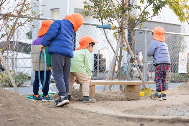 2023年度より、「原体験バス」を導入。各園で子どもたちが自分たちで行きたい場所、やりたいことを相談して出かけています。普段の遊びのなかでも、泥んこ遊びを楽しんだり、散歩時に虫探しに夢中になったり…こどもたちの「やりたい!」をどうやったら叶えられるかを、先生たちは日々最大限考えています。