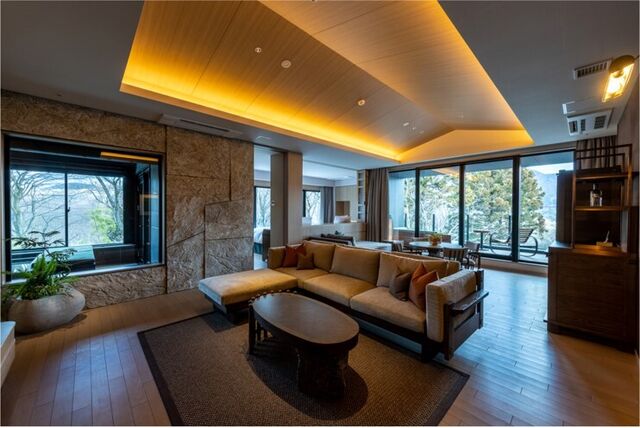 パノラミックに広がる箱根連山を目の前に、大自然の中に佇む山のリゾートとして誕生いたしました。プリフィックススタイルで愉しむお食事と、全39室の客室露天風呂と大浴場にひいた温泉、自然の光とリンクした日本を感じる穏やかな空間の中に、箱根らしい力強い岩と草花が深みを演出し、大自然の中にいるようなラグジュアリーリゾートです。
