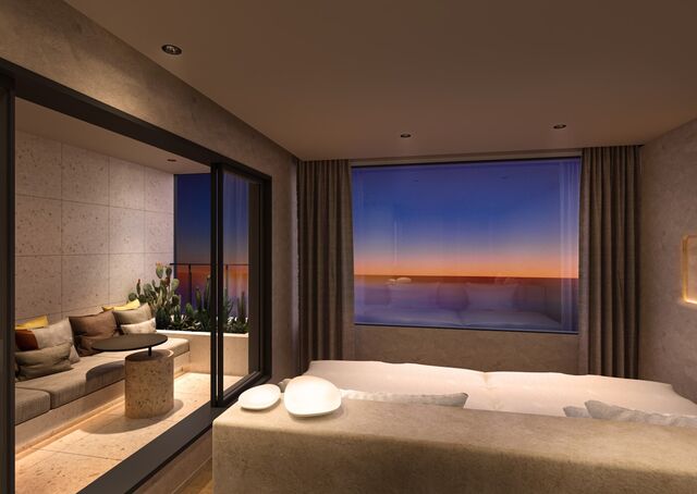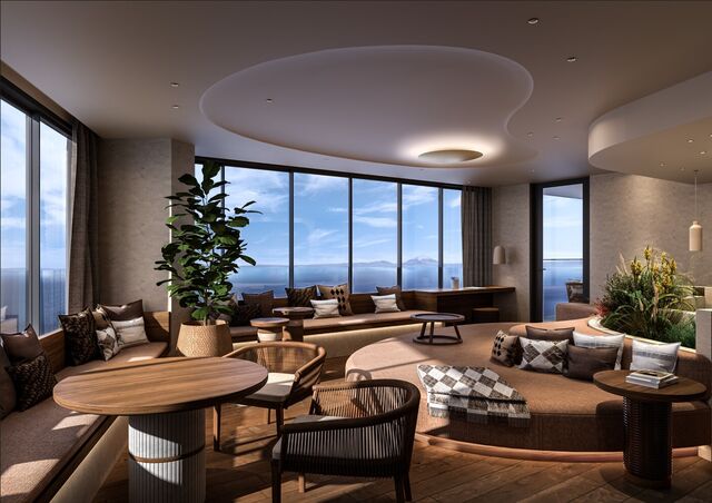 地上4階建ての建物には、ロビーやラウンジ、レストラン、江の島方面の海や富士山を一望し天然温泉を備えた34の客室、ルーフトップバーやテラスなどを配し、オーシャンビューを存分に楽しむことができます