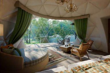 自然の地形をそのまま活かした広大なフィールドには、快適性とデザイン性を兼ね備えた32サイトのドームテントを完備。全サイトには天然温泉のプライベートバスを備えております。