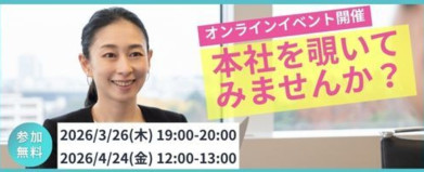 本社をちょこっと覗いてみませんか? LAVAオンラインイベントを開催します! 「本社はどんなところ?」 「どうやってここまで拡大してきたの?」 「本社って何してるの?」 「どんな人が働いてるの?」 そんな疑問や興味に、社員自身が“リアルな声”でお答えします。 本社の裏側、オフィスの雰囲気、働く人のリアルな姿を知れるチャンスです✨ Point ✅オフィスツアーを開催!実際のオフィスの様子が見られる! ✅社員のリアルな声が聞ける! ✅参加者限定のQ&Aタイムあり♪本部社員と直接話せる! コンテンツ 事業紹介 今後の展望 企業理念について 数字で見るLAVA本社 LAVA本社ツアー 募集職種のご紹介 など ※コンテンツはあくまで予定です。諸事情により変更となる場合がございます。 イベント実施日時 ①2026年3月26日(木)19:00~20:00 ②2026年4月24日(金)12:00~13:00 ※所要時間は約1時間を予定しています。 応募締切 各開催日程 前々日 23:59まで こちらのページの表示されている「応募する」ボタンより、必要事項をご記入のうえお申込みください。 参加方法 オンライン開催 カメラオフで参加OKです! オンライン会議ツール「Zoom」を使用しますので、通信環境・機器はご自身でご準備いただくようお願いいたします。 参加費 無料 注意事項 このイベントは、オンライン配信のみでの開催です。 配信内容の録音・録画ならびに外部への公開はお控えください。 続きを見る