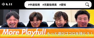 コーチの1日(平日の一例) ◻︎10:00 朝の151運動、朝会 ◻︎10:15 午前のご支援開始(95分) ◻︎11:45 記録の作成 ◻︎12:00 同僚とランチに行った後は少しお昼寝 ◻︎13:00 お昼の151運動 ◻︎13:05 参加しているプロジェクトのミーティングに参加 ◻︎14:15 午後のご支援!保護者へのフィードバックも忘れずに ◻︎15:50 支援内容の記録作成、事務作業 ◻︎17:30 清掃・環境整備など ◻︎17:55 帰りの151運動 ◻︎18:00 勤怠を打刻して帰宅♪ リィのコーチが働きやすいワケ 圧倒的なクリア運営 リィボーダーチェック(LBC)の徹底で、「明日運営指導が入っても堂々としていられる状態」を毎日キープしています。圧倒的にクリアな運営で迷うことなくまっすぐお子様に向き合えます。「配慮をしても遠慮はしない」という文化の浸透により、疑問点はその都度「クリア」にしながら業務ができます。 コーチングポリシーREPS(レップス) ◎R:Respect(リスペクト)人として対等に関わります 私たちは「指導」をする教育指導者として対立関係になることはせず対等であることを大切にしています。「まずは自分が1番に楽しむ」ことで子どもたちも一緒に楽しんでくれます!楽しいはたくさん動くことの原動力になります🌈 ◎E:Ecological(エコロジカル)個ではなく環境にアプローチします 「〜させる」ということはせず、「思わず〜〜したくなっちゃう環境をつくる」ことがコーチの腕の見せ所です💪例えば「走る」という動きも「走ろうね」と指示をするのではなく、対象となるお子様の好きなもの(車や恐竜、魔女など)の世界観を作ることで「自然と走る」環境設定をします。 ◎P:Pump(パンプ)バクバク、ドキドキ、ワクワク コーチも子どもたちと一緒に思いっきり身体を動かします。体操教室やスイミングスクールなどとは違うので、運動能力やスキルは必要ありません。「運動を楽しむ」ことができれば素敵なコーチです! ◎S:Sports(スポーツ)好きなスポーツを増やします。 Lii sports studioでは「動きの多様化」をポイントにしています💡たつ・おきる・あるく・はねる、など、身体を使ううえで土台となる動きを身につける支援をします🏃 業務内容 リィのコーチのシゴト ・運動支援をメインとしたお子さまへのプログラム提供 ・運動メニューの作成 ・保護者さまへのフィードバック ・事務作業 ・環境整備・清掃 ・希望に合わせたプロジェクトへの参画 (運動プログラム作成プロジェクトへの参画、面接官への挑戦、スタジオリーダーへの挑戦、海外出張の通訳、など、関心のあるキャリアに合わせて挑戦することができます) キャリアパス リィでは、様々なキャリアを描くことが可能です🌈 ・児童発達支援管理責任者として支援のプロ ・こどもたちに直接支援を届けるスペシャリストコーチ ・スタジオをマネジメントするリーダー ・会社全体を支える品質管理やプロジェクト担当者 ・新しい世界を切り開く新規事業への挑戦者 など 様々なキャリアを描くことが可能です。 社員の声 ◎リィ歴3年Oさんの声(英語教員免許) 新卒でリィに入社し、今はスタジオリーダーとして勤めています。元々教員を目指していましたが、教育実習を経て「集団教育ではなく一人一人に必要な支援を確実に届ける」仕事がしたいと思いリィに入社を決めました🏃「運動特化」なので、保健体育の免許を持っていない自分にできるか、と不安でしたが特別な運動スキルは不要で「一緒に楽しむ」ことが子どもの「できた」や「もう1回やってみたい!」を作っていると実感しています。社員自身にも挑戦できる場が用意されていたり、オフサイトやドキドキポイント、15時退勤など働きやすい制度があるのも魅力的で、自分が楽しく働くことが子どもや保護者野方に良い影響をもたらしていると感じています🎈 ◎リィ歴2年Aさんの声(社会福祉士) 元々介護施設で働いていました。小児分野に関心があったため思い切って挑戦しました。リィの平均年齢より自分の年齢が高いこともあり、運動特化であることや挑戦的な文化であることについていけるかは不安でしたが、リィに来て自分が変わったと感じています。今までは会社の方針に自分の身を預けたり、変化を疎ましく思ったりしていましたが、今は自分のやりたいことをやってみたいと思えるようになりました。それも、失敗しても挑戦を誉めてくれる環境があることや、年齢問わず挑戦の機会が与えられる環境があるからだと思っています。宣誓(理念)やism(行動指針)も浸透しているので、変化が起きても大変さを感じることなく、進化していることを感じて嬉しい気持ちになります。