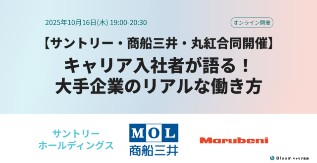URL:丸紅×サントリー×商船三井合同開催 キャリア入社者が語る!大手企業のリアルな働き方