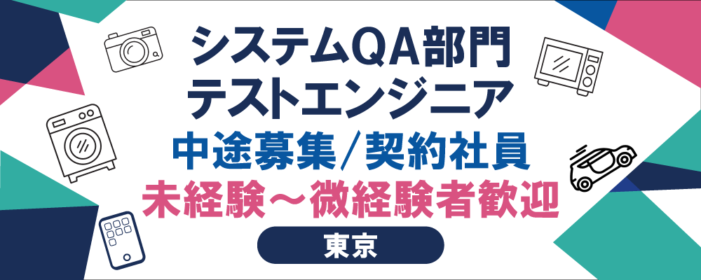 | 職種 / 募集ポジション | 【システムQA部門:初級テストエンジニア(未経験~微経験者歓迎)】 |
