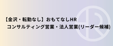 【金沢・転勤なし】おもてなしHR コンサルティング営業・法人営業(リーダー候補)
