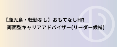 【鹿児島・転勤なし】おもてなしHR 両面型キャリアアドバイザー
