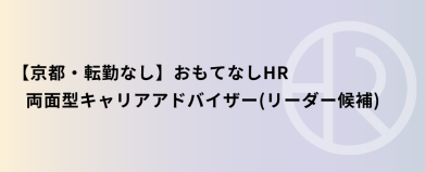【京都・転勤なし】おもてなしHR 両面型キャリアアドバイザー(リーダー候補)