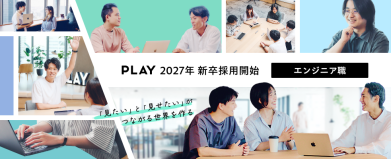 PLAYについて ドラマや映画で、泣いたり、笑ったり、感動したり、白熱したスポーツの試合で熱くなったり、手に汗握ったり ・・・。 動画配信は、日々多くの人達に、たくさんのワクワクやドキドキを届けています。 PLAYはそんな日常の様々なシーンを生み出す動画配信プラットフォームを提供している会社です。 事業内容 PLAYの事業は主に「自社プロダクト開発」と「システムインテグレーション」の2つで成り立っています。どちらであっても携わる案件のほとんどは、国内有数の大規模サービスです。 数十万ものエンドユーザーが同時視聴する際にどのように負荷分散するかなど、他社ではなかなか経験することのない開発や動画配信固有の技術習得が可能です。 自分の携わった仕事が、世の中の多くの人の身近な存在で、人々の生活に直接影響を与えられるということも仕事の魅力の一つです。プレミアムコンテンツを持つお客様の事業拡大に貢献することができます。 ◼︎自社プロダクト開発 大手動画配信サービス企業や放送局、一般企業の動画配信やコンテンツ管理に必要なプロダクトを開発、提供しています。国内有数の動画配信サービスに活用されているプロダクトが中心で、常に高品質、高性能な機能が求められており、仕事を通じて高い技術を身につけることができます。 ◼︎システムインテグレーション 自社プロダクトを活用しながら顧客のシステムを構築し、継続的な業務支援を行うことでサービスのグロース/スケールを実現しています。つまり、作ったサービスのユーザー数や利用数、再生数が増えることがPLAYの売上向上になります。そのため、顧客と対等な立場でサービスと向き合う姿勢が重要であると考え、常にエンドユーザーを第一に開発しています。 PLAYのエンジニア職の魅力 ◼︎チーム開発による動画系エンジニアとしての幅広いキャリア 動画配信技術に特化し成長している企業のため専門性の高いエンジニア組織です。 新しい技術の習得や若手育成の機会やマネジメント経験も積みやすい環境があります。 ◼︎エンジニアとして本質をとらえた開発 エンジニア一人一人に裁量があり、要件定義や言語の選定からリリースまで一貫して任されるケースが多くあります。顧客からの依頼に対しても、要望をそのまま作ることはほとんどなく、本当に求められていることは何なのかをエンジニア自身が理解し形にしていくことで、よりよいプロダクトになり、ユーザーに届くことをを目指しています。 ◼︎自社内勤務 顧客の動画配信システム開発のすべてを担うことが多く、システムインテグレーションの担当であっても社内勤務者の比率はほぼ100%です。フレックスタイムやリモートワークを活用し、よりパフォーマンスを発揮できる働き方をしていただけます。 社内勤務者が多いからこそ、働きやすいオフィスづくりにこだわっています。 働く環境 ◼︎研修 入社後は、社内研修、ビジネスマナー研修、プログラミング研修をご用意しています。 プログラミング研修は、プログラミング学習に特化した企業によるカスタマイズ研修で、フロントエンド、データベース、インフラ、セキュリティなどの幅広いテーマを扱います。 研修中も定期的に社内エンジニアとの交流会や会話できる時間なども設けており、現場で働くイメージを醸成しながら研修を受けることができます。 その後も、経験年数やポジション、キャリアに合わせ、必要な知識や気づきが得られるような研修を適宜実施しています。 ◼社内勉強会 配属後のOJTの他に、各部門で勉強会や共有会を実施しています。 LT会『てっくじゃむ』に始まり、ナレッジや失敗事例の共有会、テーマを設定した分科会、また、自身の知識をテックブログにて発表するなど、継続して学びを深められる風土が根付いています。 ◼︎イベント PLAYでは、社内コミュニケーションを取りやすい環境づくりに力を入れています。 交流支援制度などの福利厚生の制度や、オフィス環境の整備はもちろん、納会、忘年会、社員旅行や周年パーティーなど、気軽に飲食しながら、情報交換や社内交流ができるよう様々なイベントを企画しています。 クライアント例 ・TVer ・Hulu ・WOWOW オンデマンド ・PIA LIVE STREAM ・Z会 ・日本医師会 ・ヤマハ音楽教室 ・Giants TV ・劇団四季ライブチャンネル など メディア・エンタメ・エンタープライズ問わず幅広く動画配信サービスを支えています。 募集要件 ■必須要項 2027年4月に新卒として入社が可能な方 ■求める人物像 ・モノ作りが大好きな方 ・新しい知識、技術を貪欲に吸収する意欲のある方 ・何事にも前向きに取り組める方 ・自ら考え、実行できる行動力のある方 ■採用実績校 東京大学/大学院、大阪大学/大学院、東京工業大学/大学院、慶應義塾大学/大学院、東京電機大学/大学院、岡山大学/大学院、鳥取大学/大学院、立命館大学、愛媛大学、岡山県立大学、会津大学、金沢工業大学、法政大学 他 ■給与 ※決算
