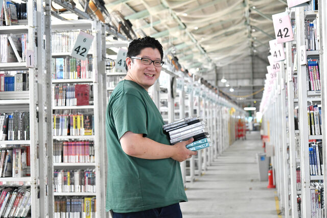本やゲームソフトなどを扱う倉庫で、