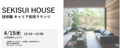 本イベントは、当社の技術職採用の基本情報をご案内する説明会です。 技術職(設計や施工管理)にご興味をお持ちの方はもちろん、 「まだ本格的に転職を考えていないけれど話だけでも聞いてみたい」「将来の参考にしたい」といった方も、ぜひお気軽にご参加ください。 正式なご応募の前に情報収集をしていただく場として、ご活用いただければ幸いです。 【イベント詳細】 ・日時:2026年4月15日(水)12:10~12:50 ・場所:ZOOM ウェビナー ・参加費用:(無料) 【参加メリット】 ・積水ハウスの技術職採用に関する基本情報を人事担当者がご説明する場です ・具体的な応募や相談する前段階の情報が欲しい方向けのイベントです ・ウェビナーのため仕事の休憩時間などを利用し気軽に参加できます ・ウェビナーのQ&A機能で質問できます 【参加申し込み方法】 ・本ページの「応募する」から申し込みください 必要情報:①お名前 ②生年月日 ③メールアドレス ④現在の所属企業名 お申込み期日:4/14(火)15:00まで ※参加用の入室情報は開催当日AM10:00までに配信いたします 【ご参考】 <求人情報>積水ハウス㈱キャリア採用_設計/施工管理_募集 <施工管理> ・キャリア入社者インタビュー記事 ・施工管理密着動画 <設計> ・DESIGNOFFICE(動画) ・戸建実例 ・シャーメゾン実例 続きを見る