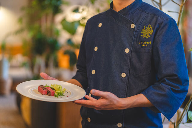 宿泊とバー体験が一体となった空間の中で、料理は常に “お酒との関係性” を前提に設計されます。