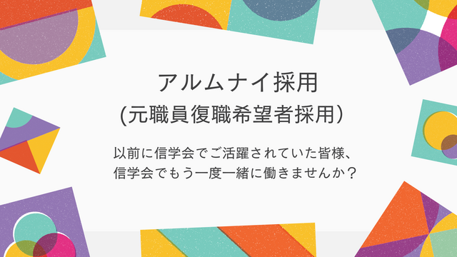 信学会では、再び信学会に戻って働きたいとお考えの方の【事前応募】を随時受け付けています。