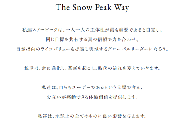 私達、スノーピークの社員一人ひとりが真北の方角へ向かうために最も大切にしていること、