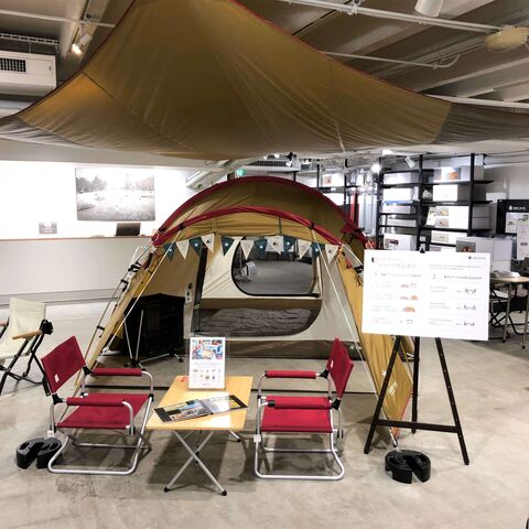広々とした空間でアウトドアギアやアパレルを常設展示し、