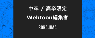 みなさん、はじめまして! 株式会社ソラジマ・代表取締役の前田です。 私たちは現在、世界的な大ヒット漫画を生み出すため、少年マンガ編集部を立ち上げています。 その立ち上げメンバーとして、マンガ編集者を全力で募集しています。 なぜ、あえて「高卒/中卒」なのか。 それは、ソラジマを立ち上げて7年、漫画編集者になるのに「学歴」はいらないと断定できると思ったからです。 実際に弊社では、 高卒で入社した編集者が、 次々とヒット作品を生み出し、社内トッププレイヤーとして活躍しています。 では、彼女には何があったのか? それは「執念」と「行動力」と「思いやり」です。 作品がヒットしないことはいくらでもあります。 それでも何度でも立ち上がる執念。 作品をヒットさせるためにどんなことでもやり切る圧倒的な行動力。 実際に作品を描く作家の立場に立って考え、寄り添える思いやり。 必要なのは、それだけです。 それにも関わらず世間一般では、 漫画編集になるのに高学歴が必要とされています。 それ自体を間違ってるとは言いませんが、そうじゃない道があってもいいと、僕は本気で思っています。 「やるべきことをやる」 「作家の立場で考える」 「誰よりも努力する」 この積み重ねの先にしか、ヒットは生まれません。 ■ マンガ編集に本気で憧れていた方 ■ 学歴を理由に、夢を諦めてきた方 ■ やりたいことは決まっていないけど、このまま終わりたくない方 ■ 世界的ヒットを本気で狙う仕事に、ワクワクしてしまった方 ■ くすぶる想いを、どこかにぶつけたい方 人生は一度きりです。 ここは、 年齢も学歴も関係なく、 ヒットと実績で評価される世界です。 ぼくと一緒に「今世紀を代表するコンテンツ」を生み出しませんか。 「このまま終わりたくない」と思っているなら、迷わず応募してください。 株式会社ソラジマ 前田儒郎 選考基準 この選考に、御託はいりません。実力だけの真っ向勝負です。 大学中退、元芸人、元声優、夜職、現場仕事など、現職/学歴は問いません。 毎月開催される「仮連載会議」で、自らプロデュースしたネームを通過させる。 通過=即、漫画編集者として「内定」。 その作品は、2027年春リリースのアプリで、あなた自身の最初の連載作品として世に出ます。 こんな人は、マッチしないと思います ・「業務」をこなしに来る人 ・「正解」を欲しがる人 ・「他人の評価」を気にする人 具体的な業務内容 ・連載にむけた作品の立ち上げ業務: 制作チーム結成、ストーリー構成決め、企画書作成、ロゴ作成、キービジュアル作成 ・制作ディレクション: 制作工程の管理(ネーム, 人物線画, 人物着彩, 背景, 仕上げ)をクリエイターさんと実施します ・チームメンバーマネジメント: 制作チームの管理(人事評価, 良好な協力関係を築く) ・分析、次の作品へ : 納品した作品がどの層にヒットしたかなどを分析し新たなヒット作品を生み出すために上記の流れを繰り返します。 ソラジマのウェブトゥーン作品一覧:https://sorajima.jp/works