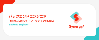 仕事内容 当社のコアプロダクトであるマーケティングSaaS「Synergy!」「Synergy! LEAD」のバックエンド開発を担っていただきます。 私たちのチームは、 「言われたものを作る」受託体質ではありません。 月次リリースのサイクルの中で、PdMと密に議論を交わし、 「ユーザーにとって本当に価値のある機能は何か」 を要件定義の段階から共に創り上げます。 長年愛されてきたプロダクトだからこそ、お客様の声を反映した継続的な機能開発を中心に、最新の技術スタックを取り入れながらプロダクトを成長させる「手触り感」のあるフェーズです。 AWSの新サービスなども積極的に取り入れ、プロダクトの成長とご自身の技術的成長をリンクさせながら、将来的にはテックリードやエンジニアリングマネージャーとしてのキャリアを築いていただけるポジションです。 【Synergy! / Synergy! LEAD】(コアプロダクト:マーケティングSaaS) Synergy!(シナジー):https://www.synergy-marketing.co.jp/cloud/synergy/ Synergy!LEAD(シナジーリード):https://www.synergy-marketing.co.jp/cloud/synergylead/feature/ 【業務の進め方・期待する役割】 単に仕様書通りにコードを書くのではなく、「プロダクトを成長させるためにどうすべきか」をPdMやデザイナーと共に考え、要件定義から運用保守まで一貫して携わっていただきます。 また、CI/CDの改善やテスト自動化などの開発プロセス効率化、セキュリティ品質の向上など、チーム全体の生産性を高めるアクションも大歓迎です。 新しい技術への学習意欲を活かし、チームの技術力向上にも貢献していただくことを期待しています。 エンジニア職種向け採用ピッチ資料 具体的な業務内容 バックエンド開発・保守業務(設計・実装・コーディング) PM/PdM支援(要件定義、技術要件定義) システム設計(基本設計・詳細設計) システム基盤構築・保守業務(AWS環境構築を含む) テスト全般(単体テスト・結合テスト等) 保守・トラブルシューティング・問題解決 品質を向上させる活動(CI/CD改善、テスト自動化など) 脆弱性対応・セキュリティ管理 (経験に応じて)システムアーキテクチャ設計・技術選定への参画 (経験に応じて)チームメンバーの技術指導・メンタリング 開発環境・利用ツール コミュニケーションツール:Slack、Google Meet AIツール:Gemini(Google WorkSpace)、Github Copilot IDE:IntelliJ IDEA、VSCode バージョン管理:GitHub クラウド:AWS コンテナ:Docker、Kubernetes その他:Figma 組織構成 チーム構成:4-6名のエンジニア + PdM + デザイナー リリース頻度:月次リリース 勤務形態:リモート勤務可(週1回出社、11-15時のコアタイム) 残業時間:月10時間程度 ■入社者の声 当社で活躍するエンジニアの多くは、SESやSIerといった異なる環境からの転職者です。 「入社してどう変わったか」、リアルな声をご紹介します。 ・「単価」ではなく、「価値創出」に向き合える喜びを。(SES出身 / Aさん) 『前職では案件ごとに顧客を転々としていましたが、今は1つのプロダクトに腰を据えて継続的な改善に取り組めています。単価計算ベースの働き方から解放され、自分たちの判断で技術選定やプロセス改善ができる環境になり、エンジニアとしてのモチベーションが劇的に上がりました。』 ・「部分最適」から抜け出し、視野の広いフルスタックへ。(SIer出身 / Bさん) 『以前はアプリ領域の詳細設計〜リリースまでという「限定されたフェーズ・領域」しか担当できませんでした。入社後はインフラからアプリまで一貫して携わるフルスタックな経験ができ、システム全体を多角的に捉えられるように。エンジニアとしての視座とレベルが一段上がったと実感しています。』 ・裁量と責任が、ビジネスパーソンとしての自分を育ててくれた。(SES出身 / Cさん) 『前職は保守メインで実装経験も少なかったのですが、当社ではOJTを経て開発リーダー、そして現在はGM(プレイングマネージャー)を任されています。自分で意思決定し、お客様のフィードバックを直接もらえる環境は責任も伴いますが、エンジニアとしてだけでなくビジネスパーソンとして大きく成長できました。』 【その他、転職してきたメンバーからよく挙がる「自社の推しポイント」】 「経営層が技術的な意思決定を心から尊重してくれる」 「ビジネス判断と技術判断のバランスが非常に良く、無理なデスマーチが起きない」 「マネジメント一択ではなく、スペシャリストとして現場で技術を極めるキャリアパスも選べる」 得られるキャリアパス・経験 ジェネラリスト志向:(EM: エンジニアリングマネージャー) スペシャリスト志向:(TL: テックリード) やりがい・魅力 成熟した大規模SaaSを、さらに進化させる「攻め」の開発: アーキテクチャ刷新を経て、現在はモダンな基盤の上で「新機能の追加・拡張」に注力するフェーズです。大規模トラフィックを支える安定性と、新機能を次々と生み出すスピード感を両立させる、エンジニアとして純粋に開発を楽しめる環境です。 エンジニアの枠を超え、プロダクトを「共創」する: 「仕様書