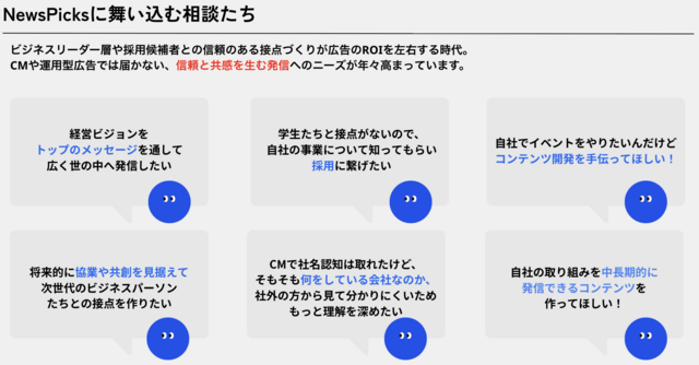 - 記事広告に留まらず、動画(番組)広告、イベントなどクライアントに対し、NewsPicksというプラットフォームを活かした幅広い課題解決のご提案が可能です。
